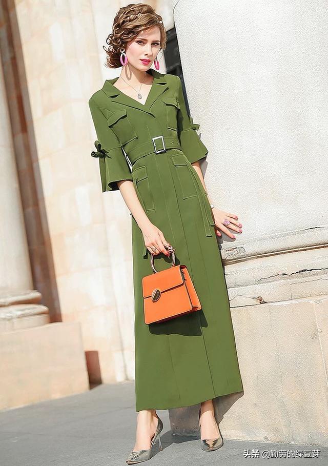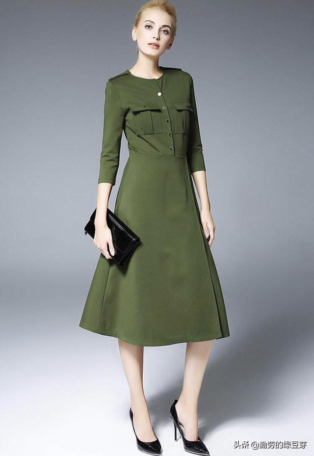 军绿色的连衣裙适合搭配什么颜色的包包呢?亲你好。建议首选黑色包包,百搭。包包款式不要太大,那样显的精致。其次可选择棕色。如果气质hold 的住,也可选择棕色为主的拼接色。如果气场非常强大,也可尝试黄色包包。其实色彩搭配方面也要看自己的爱好,但要注意整体的搭配色彩最好不要超过3种。图中搭配可进行参考。